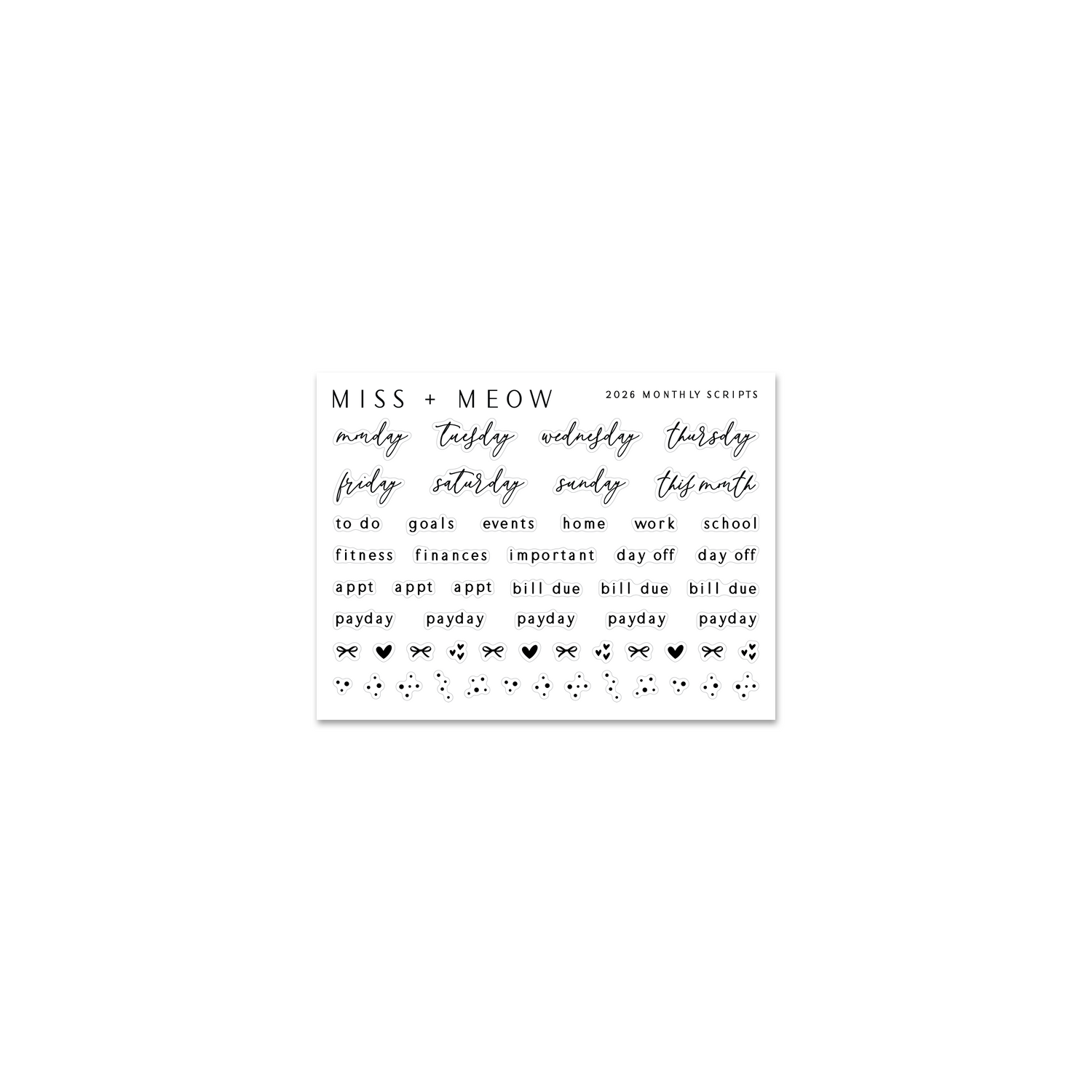 This sticker kit contains 4 sheets of foiled stickers printed on beautiful premium matte + transparent matte and designed to fit the monthly layout in most 7"x9"/A5 wide planners (ie. Sadie's Sticker Planner, Caress Press A5W, most A5W printable inserts, EC, etc...).