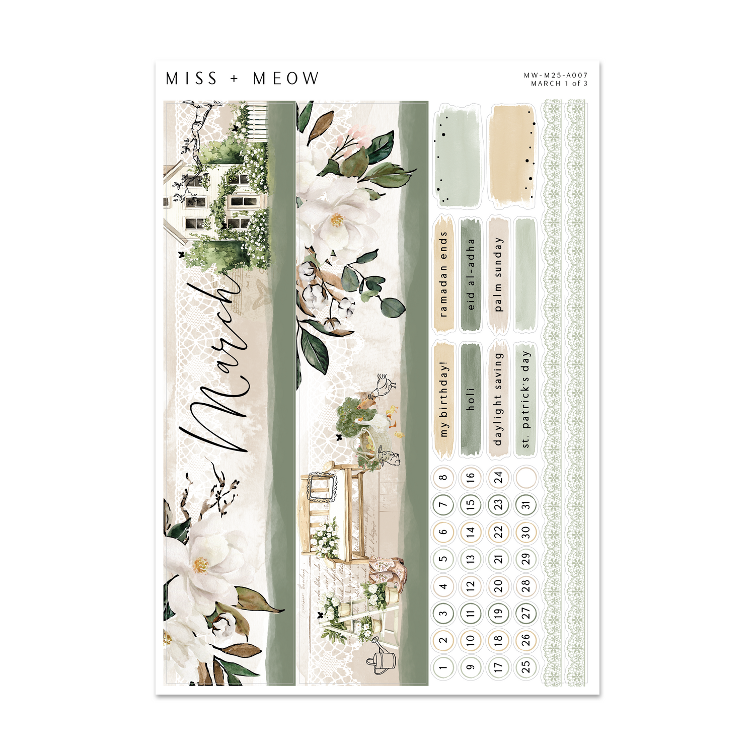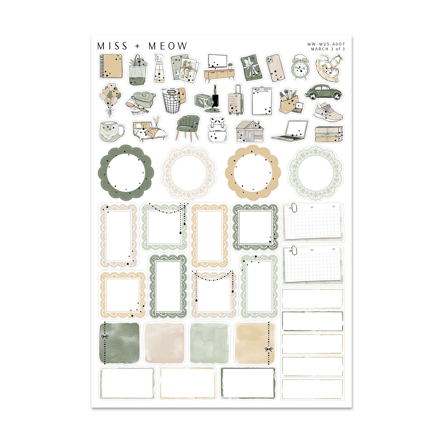 This sticker kit contains 4 sheets of foiled stickers printed on beautiful premium matte + transparent matte and designed to fit the monthly layout in most 7"x9"/A5 wide planners (ie. Sadie's Sticker Planner, Caress Press A5W, most A5W printable inserts, EC, etc...).